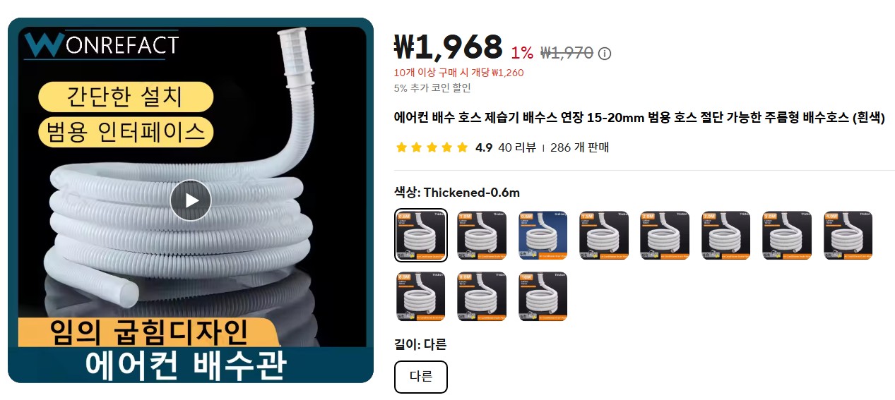 제습기 호스는 외경이 11mm 정도인데