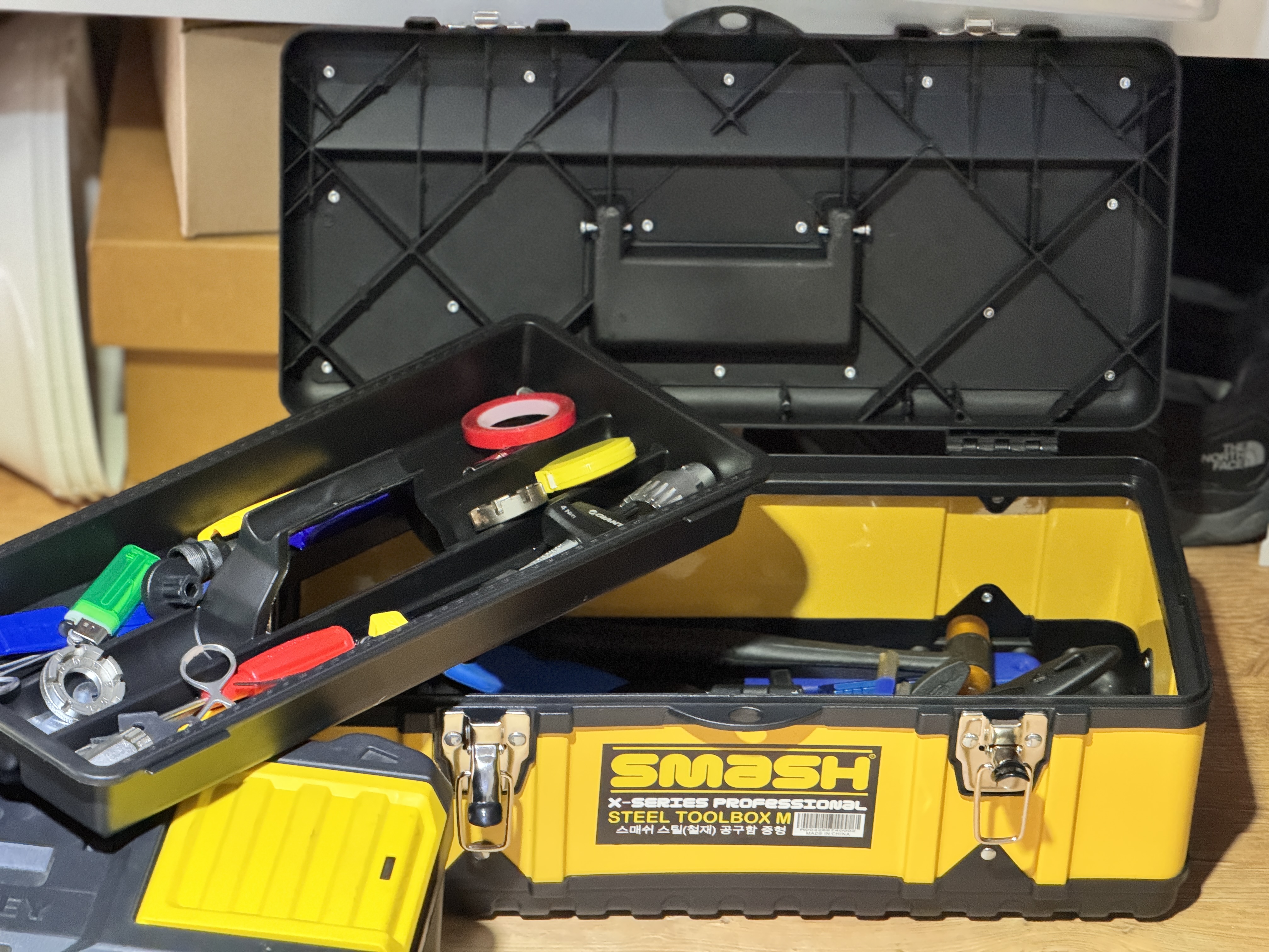 어지간한 제품은 직접 만들어 사용하는 것을 좋아하는데 그런 습성 때문인지 각종 부품 및 공구들을 상당히 많이 보유하고 있다. 부품과 공구가 많아질수록 그것들을 수납할 수 있는 공구함이 필수적이다.