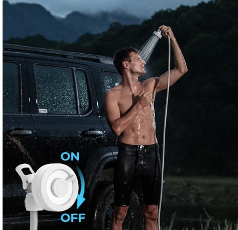 그러던 중에 이런 휴대용 샤워기를 보게 된 건데, 처음엔 그냥 장난감 같은 느낌일 줄 알았는데 스펙을 보니까 꽤 제대로 만들어진 제품이더라. 물만 있으면 바로 샤워처럼 쓸 수 있고, 분사력도 생각보다 괜찮아 보이고, 조립도 간단해서 실제 캠핑·차박 상황에서 바로 써먹을 수 있는 느낌이었다.