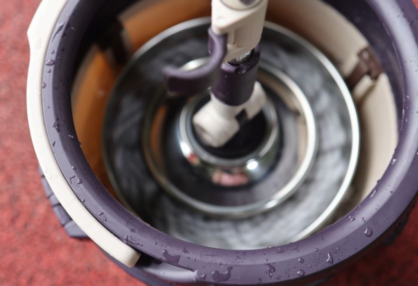 걸레가 빠르게 회전하면서 원심력에 의해 마포 걸레의 물기를 튕겨버린다