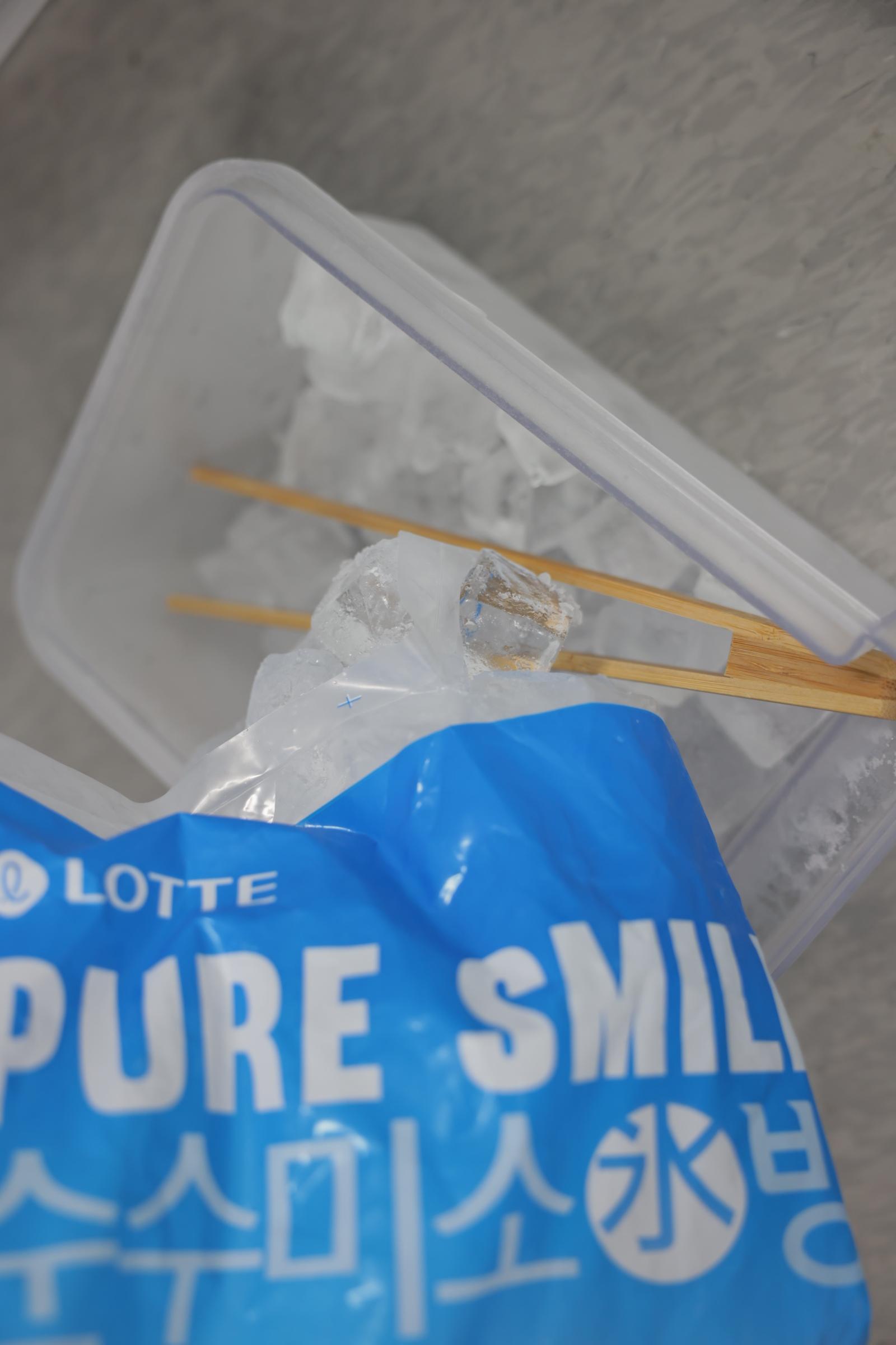 주먹으로 힘차게 가격을 한 후 옮겨야지 덩어리채 꺼낸 후 쪼개다 얼음이 사방으로 튀면